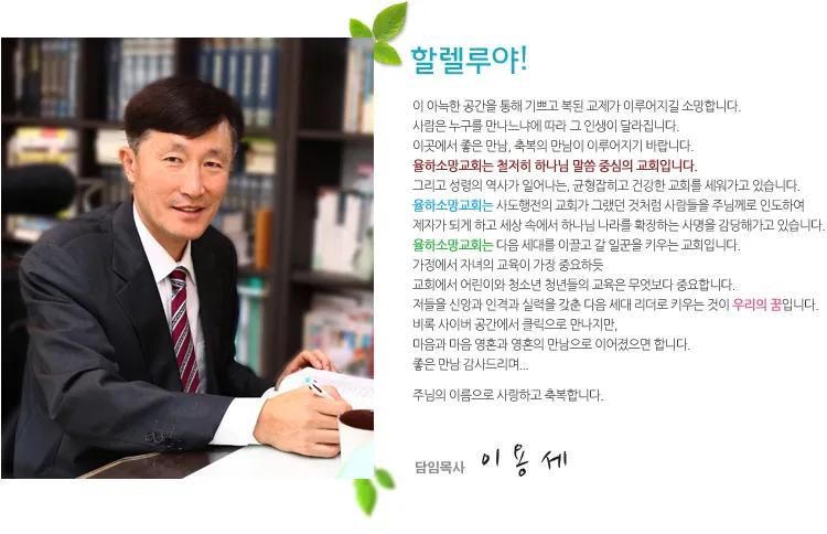 이용세 목사는 대구 율하소망교회 담임과 GBS 설교연구소장이며, 강원대학교 사범대와 경북대학교 교육대학원, 합동신학대학원대학교에서 공부했다.